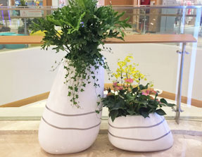 藝術花盆花器通過它的材料、造型、顏色來體現藝術設計理念,是商場美陳中的一個重要休閑景觀,凈化室內空氣點綴裝飾商業環境